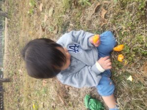 我が子はみかんがお気に召したようで服を