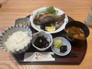 帰りに、「いけだ」っていうお店でとびきり美味しい和食を食べてたよ。