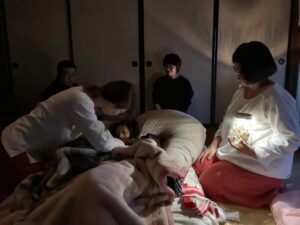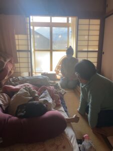 日常で色々あっても「な~にも問題ないわ!」と言い放った彼女。お腹の中のこの子の命を感じるとそれでもう全てが問題ない。幸せ。」と。私達は彼女のこの生きる姿勢に深く感銘を受けていた。みんながひとつになってお産に向かう気配が漂う。