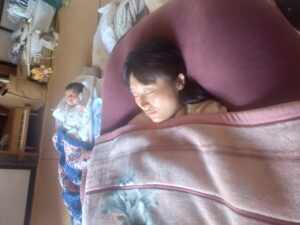 ゆっくり休む彼女と赤ちゃん。幸せエネルギーが溢れててそばにいると眠くなるグウグウ。